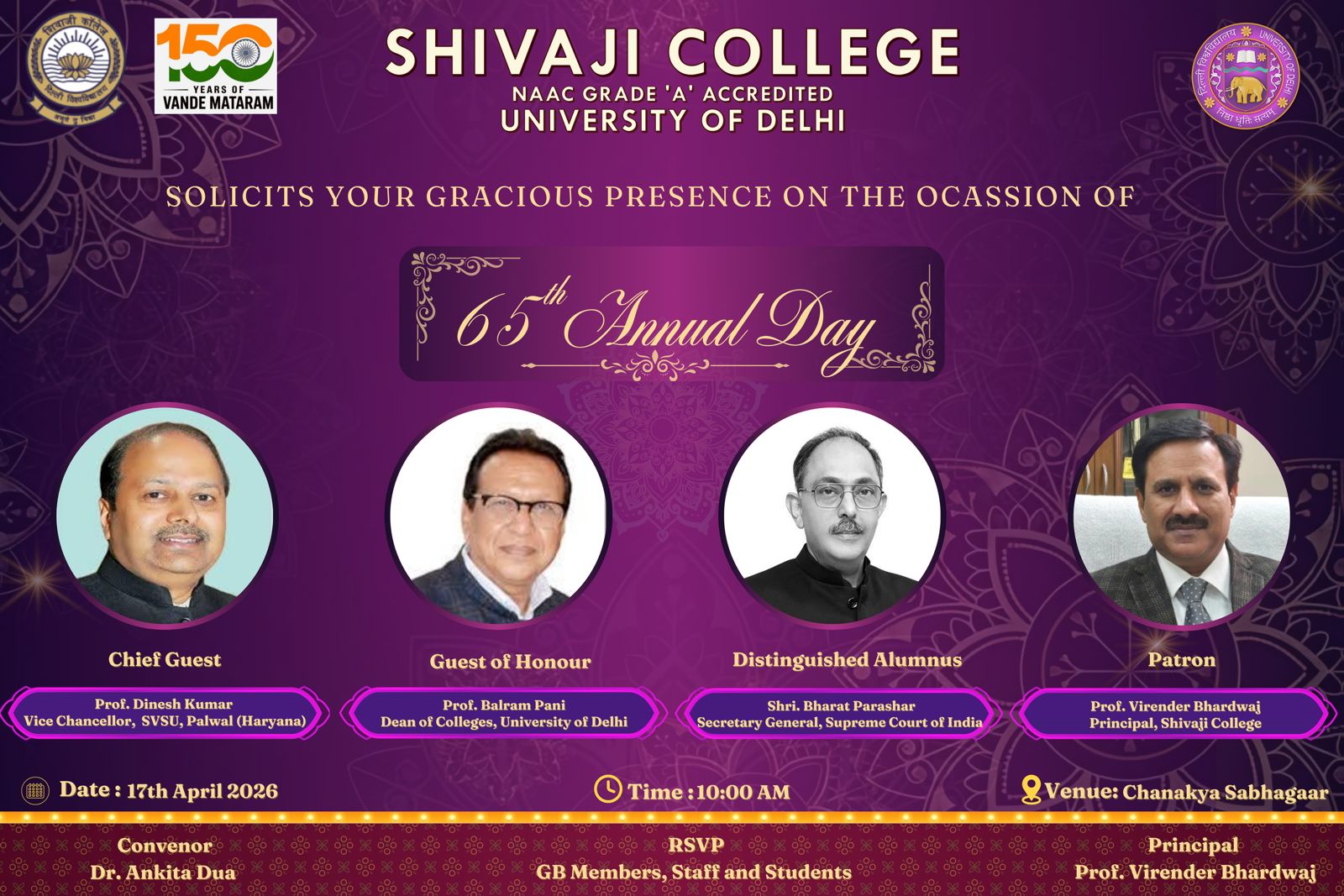 Honourable Vice Chancellor, University of Delhi